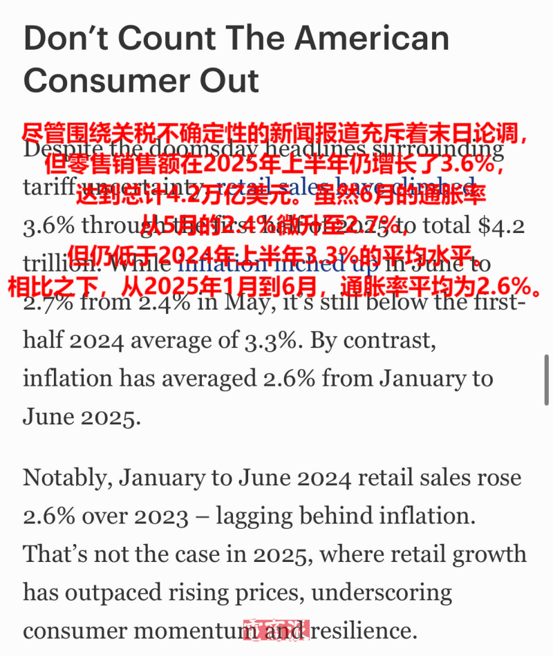 這也從側面說明,盡管消費者的購買意愿會受到來自外部環境的諸多因素影響,但若零售商能繼續提供不錯的選擇,增長還是會保持。Corestight的數據顯示,盡管今年上半年市場動蕩加劇,但美國零售總額仍增長了3.6%,達到4.2萬億美元。即使下半年關稅影響全面顯現,消費市場的韌性也可能超出預期。