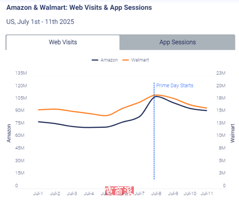 Prime Day期間亞馬遜與沃爾瑪流量對比 圖源:SimilarWeb