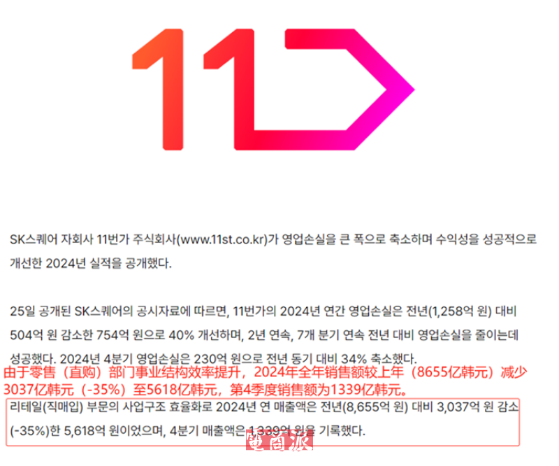 2024年全年銷售額下滑 圖源:11Street