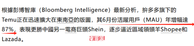 Temu東南亞月活用戶數(shù)量大漲 圖源:聯(lián)合早報(bào)