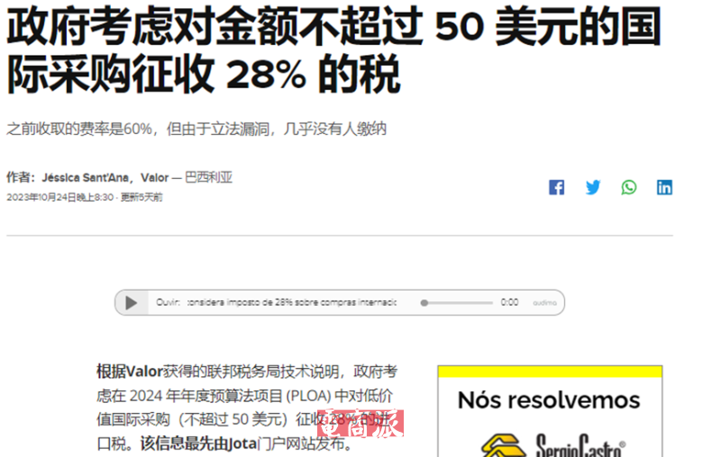 2023年巴西就計劃提高低價跨境商品稅收 圖源:Valor Investe