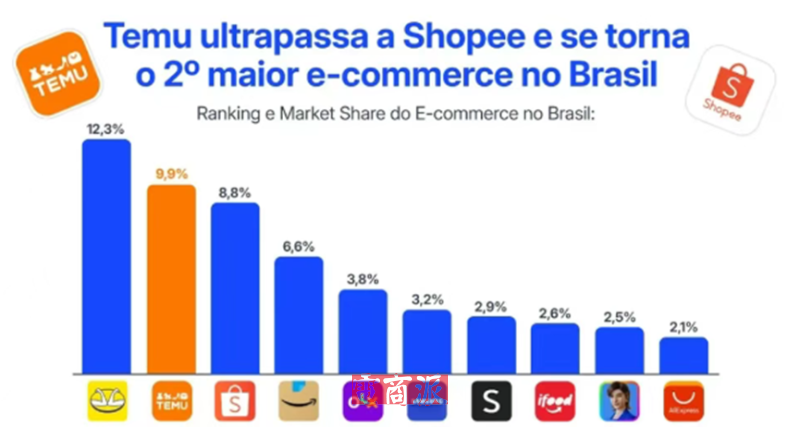 以拼多多Temu為例,Conversion的數(shù)據(jù)就顯示,今年4月份,Temu巴西網(wǎng)站點擊量單月新增5600萬次,環(huán)比3月份大幅增長25.8%,這已經(jīng)是該平臺連續(xù)第12個月實現(xiàn)的高速增長。憑借這一成績,Temu也成功反超Shopee,以9.9%的流量份額躍升成為當月巴西第二大電商平臺。