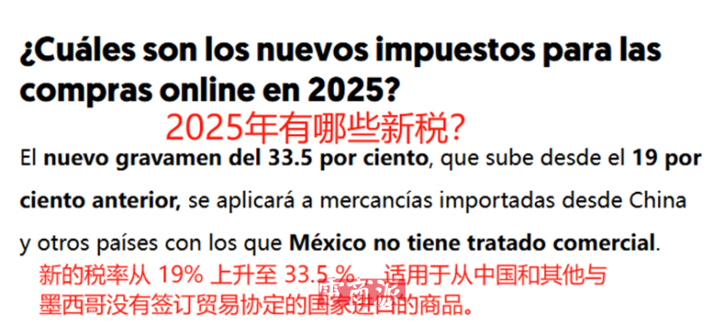 去年年底,墨西哥國家稅務(wù)總局就宣布,自2025年1月1日起,對所有通過電商平臺銷售產(chǎn)品的外國企業(yè)征收16%的增值稅;未注冊RFC稅號的賣家更面臨20%所得稅代扣,綜合稅負高達36%。隨后不久,墨西哥又宣布取消中國50美元以下進口商品的免稅門檻,統(tǒng)一征收19%關(guān)稅。