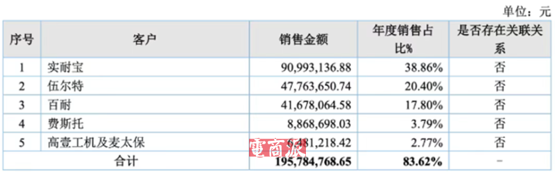 五大客戶占據(jù)八成以上銷售額 圖源:東昂科技