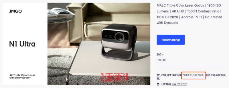 JMGO海外眾籌預售千萬元 圖源:Kickstarter
