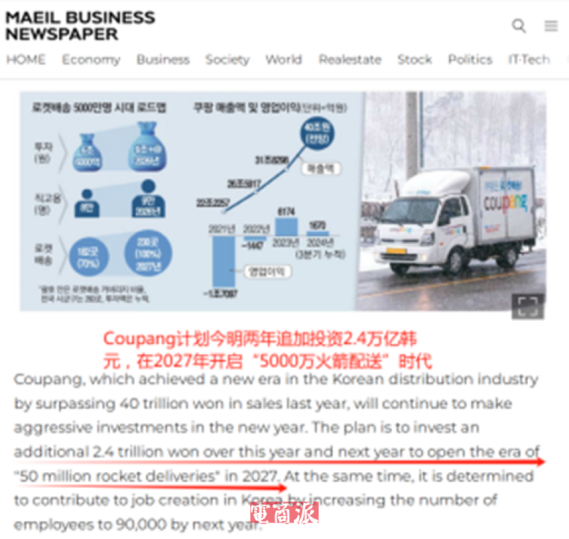Coupang追加2.4萬(wàn)億韓元投資 圖源:mk.co.kr