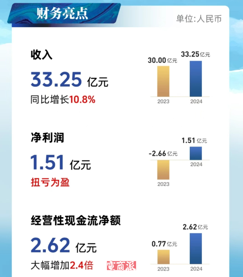 實際上從此前公開的財報來看,公司業績情況就已經有所好轉,向外界傳遞了好的信號——今年3月,子不語發布了其2024年的全年財報數據,數據顯示,2024年子不語全年總收入約33.25億元,同比增長10.8%,凈利潤為1.51億元,與截至2023年12月31日止年度的凈虧損約2.66億元相比,成功實現扭虧為盈。