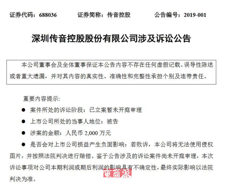 傳音被索賠2000萬元 圖源:傳音控股