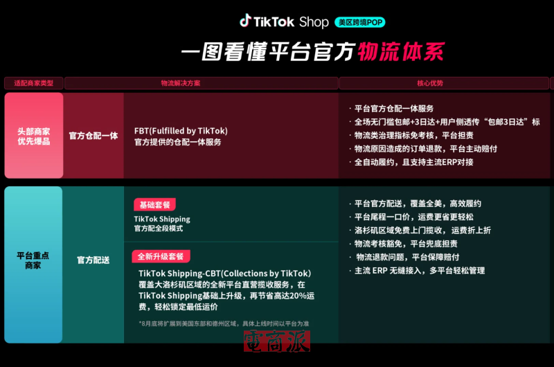 8月9日消息,為支持美區跨境自運營(POP)商家全力沖刺下半年旺季,TikTok Shop宣布官方物流體系升級,重點推出新的免費直營攬收服務(CBT),幫助商家提升履約率以及消費者購物體驗,并為商家額外節省最高達20%的物流成本。