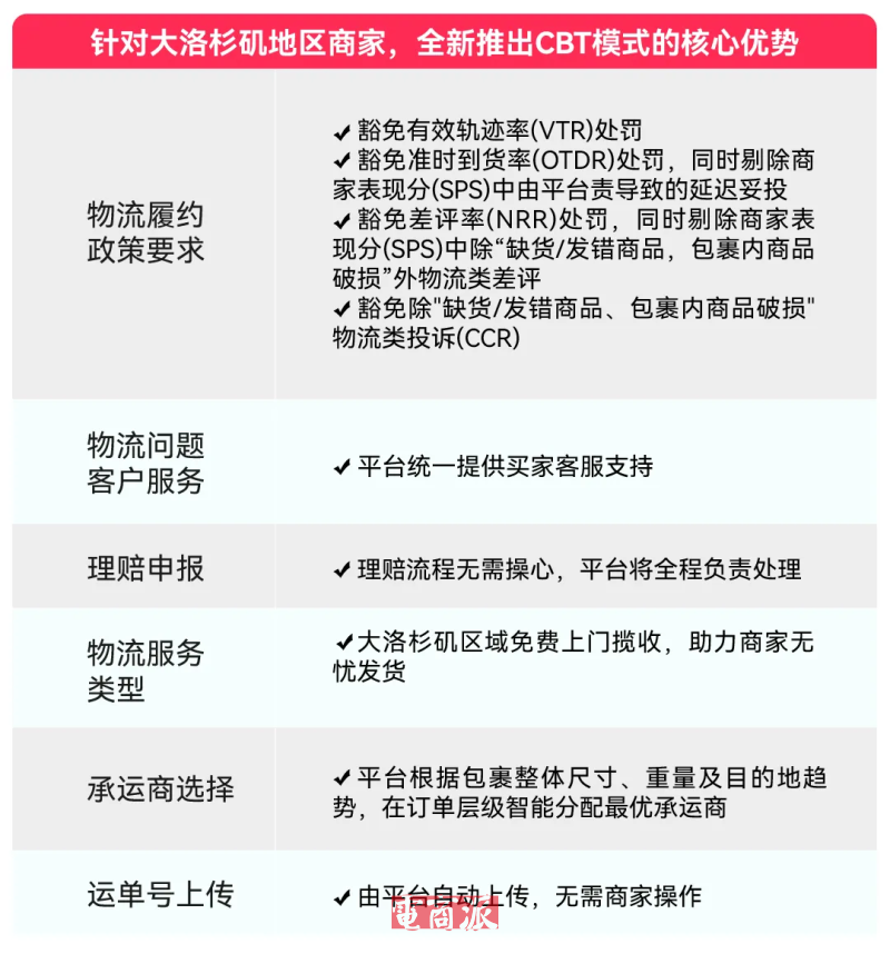 商家參與CBT模式需滿足以下條件:店鋪發貨倉庫位于大洛杉磯區域(CBT區域內訂單享受CBT價卡及服務,區域外訂單享受升級版TikTok Shipping價卡及服務);倉庫系統支持新增CBT為新的攬收服務商;倉庫支持分揀CBT訂單并交予CBT服務商。