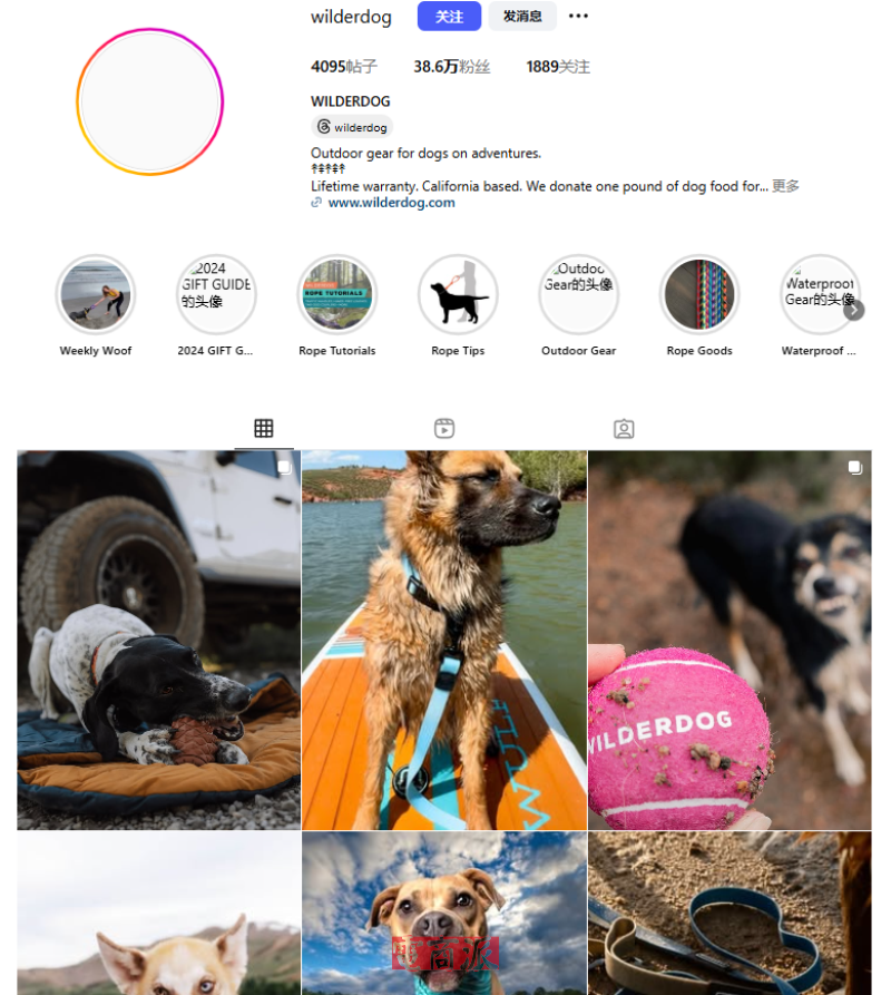 在營銷方面,Wilderdog也同樣借助了近兩年來爆火的社交媒體,在各大社媒平臺上創建了賬號并發布相關內容。例如在Instagram上會發布消費者與寵物的內容,這種形式能夠快速拉近品牌和消費者之間的距離,進一步加強消費者粘性,增加他們的忠誠度。
