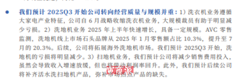 值得一提的是,目前石頭科技也意識到公司利潤方面存在的問題,承諾將平衡經營質量與市場規模,通過戰略縮減洗衣機業務、大規模裁員、拓展海外洗地機市場、彌補產品線缺口等方式帶動利潤率回升。