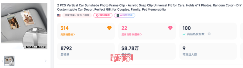 這期間,類似的寵物紀(jì)念品也顯示出熱銷跡象。例如TikTok英區(qū),一款可以記錄寵物爪印的相框銷量上漲,過去一個月內(nèi),累計(jì)銷量突破上千件。TikTok美區(qū),一款可以放寵物照片的汽車遮陽板相框夾,過去一周內(nèi)銷量破3000件,銷售額破3萬美元(約合21.5萬元)。