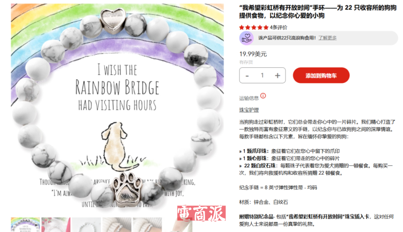于是,夫妻倆開始賣T恤,打出口號“買一件T恤,拯救一只流浪狗”,短短3月就創(chuàng)造了10萬美金的銷售額。此后,夫妻倆拓寬品類,把這種賣貨思路延伸至各大領(lǐng)域,并創(chuàng)立了品牌iHeartDogs,旗下第一款產(chǎn)品狗狗串珠項(xiàng)鏈累計(jì)銷售額超過500萬美金,iHeartDogs品牌年?duì)I收更是突破2200萬美元(約合1.6億元)。