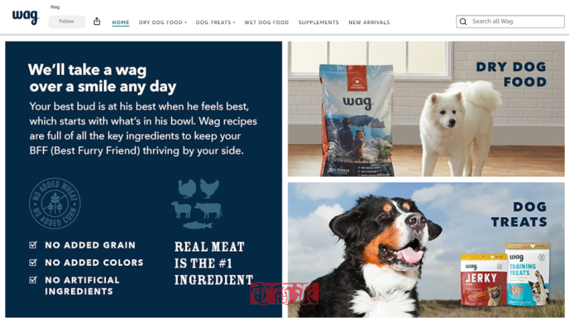 比如亞馬遜,算是較早一批重點(diǎn)發(fā)展寵物電商的綜合型平臺。2018年,亞馬遜看準(zhǔn)寵物用品市場潛力,以寵物行業(yè)中流量最大的品類,寵物食品為切入點(diǎn),推出自營寵物品牌Wag。在Wag上線前,亞馬遜上的寵物用品年銷售額超過20億美元。