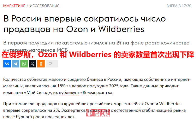 其中,兩大本土電商巨頭,Wildberries和Ozon的活躍賣家數量從2024年底的128萬,下降至今年上半年的126萬。這是這兩家平臺賣家數量首次出現不增反減的情況。