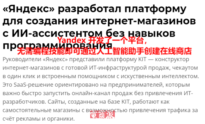 Yandex推出獨立站開發工具 圖源:cnews