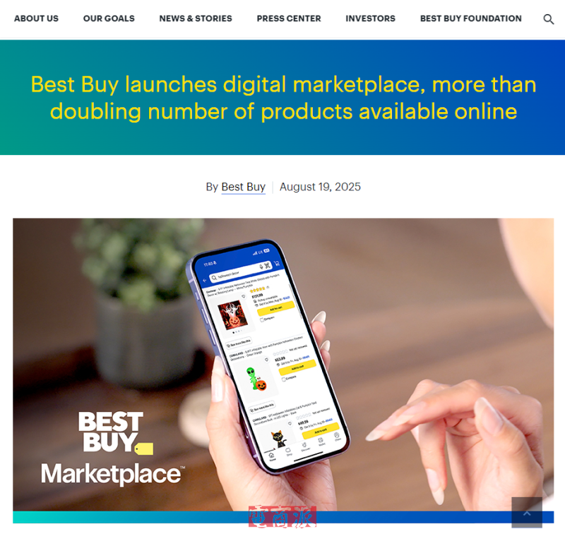 8月20日消息,美國零售巨頭Best Buy(百思買)近日正式上線第三方數字市場Best Buy Marketplace。新上線的市場引入了大量新的品牌與品類,覆蓋季節性家居裝飾、汽車科技、辦公與家居用品、電影與音樂、樂器以及玩具(包括Funko收藏品)等。百思買稱,此舉將把可售商品數量“超過翻倍”,并在某些品類實現三倍擴充,在不顯著增加自有固定成本的前提下快速擴充商品陣容并提升消費者選擇空間。