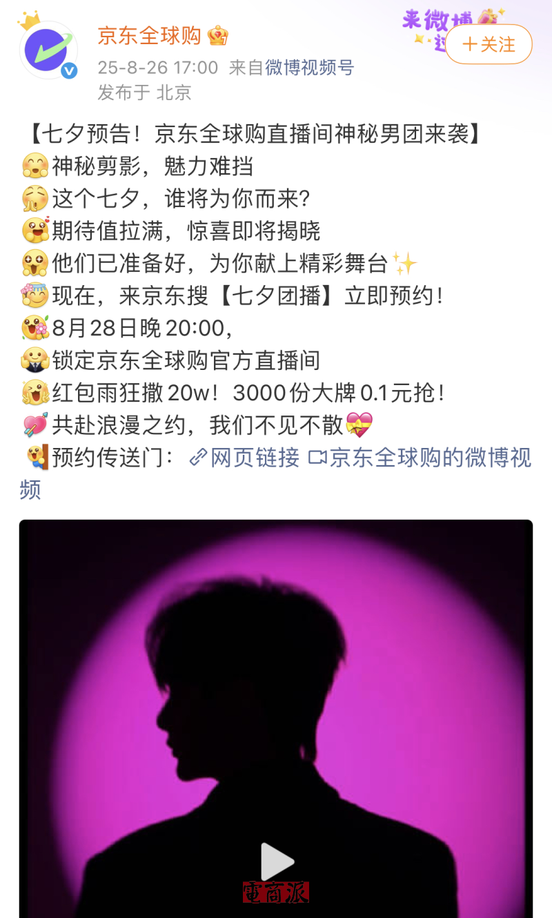 京東全球購方面表示,選擇七夕節點試水團播,旨在迎合年輕消費者對社交化、情緒化消費場景的需求。近年來,隨著直播電商進入深水區,平臺不斷探索差異化內容形式。團播憑借偶像效應和群體互動優勢,正成為吸引Z世代用戶的新突破口。