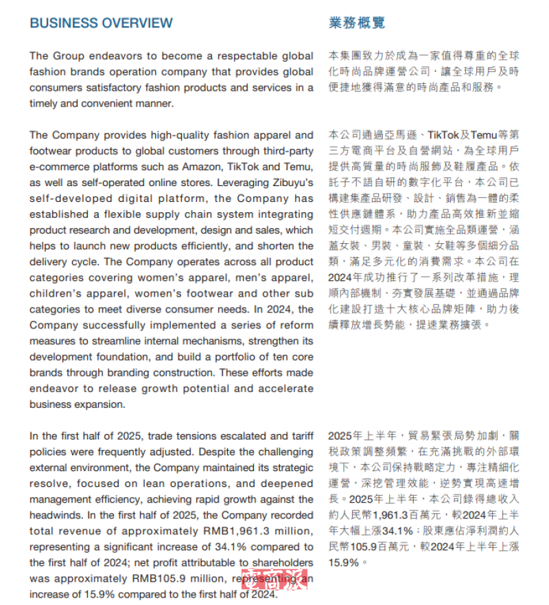 8月27日消息,子不語集團發布2025年中期業績。2025年上半年,子不語營收達19.6億元,同比增長34.1%;毛利潤14.7億元,同比提升36.4%;股東應占凈利潤1.1億元,同比增長15.9%;每股基本及攤薄盈利約為0.22元。收入增長主要是由于集團積極開展品牌化建設并大力拓展非亞馬遜渠道,核心品牌及非亞馬遜渠道實現大幅增長,帶動公司收入上漲。