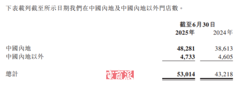截至2025年6月30日,蜜雪冰城已在全球(中國及海外12個國家)構建起超53000家的門店網絡,其中4733家分布在中國內地以外的地區。