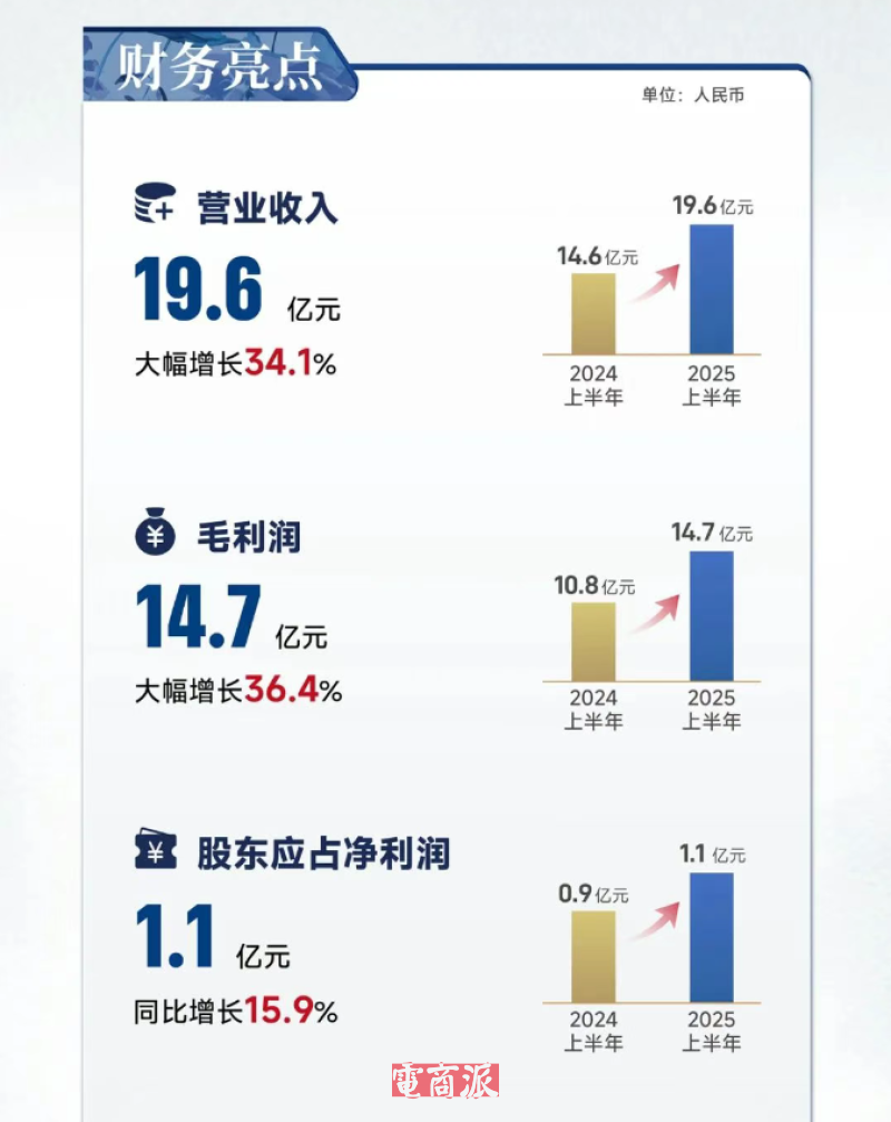 值得一提的是,近日,子不語還發(fā)布了2025年中期業(yè)績:上半年,子不語營收達19.6億元,同比增長34.1%;毛利潤14.7億元,同比提升36.4%;股東應占凈利潤1.1億元,同比增長15.9%;每股基本及攤薄盈利約為0.22元。收入增長主要是由于集團積極開展品牌化建設并大力拓展非亞馬遜渠道,核心品牌及非亞馬遜渠道實現(xiàn)大幅增長,帶動公司收入上漲。