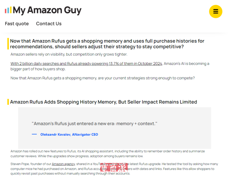 目前,Rufus的實際應用仍處于初期階段,僅有不到3%的交易依賴于該工具。但業內人士普遍認為,這標志著亞馬遜從基于算法的優化逐步轉向以客戶全程體驗為核心的電商模式。