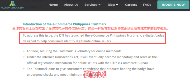 Trustmark不是營業執照,也不是新的經營許可證,只是根據菲律賓《互聯網交易法》設立的一種數字徽章。