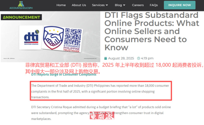 之所以會有這樣的舉措,其實也是因為當前菲律賓電商市場存在一些問題。菲律賓貿易和工業部(DTI) 報告稱,2025 年上半年收到超過 18,000 起消費者投訴,其中很大一部分涉及網上購物交易。