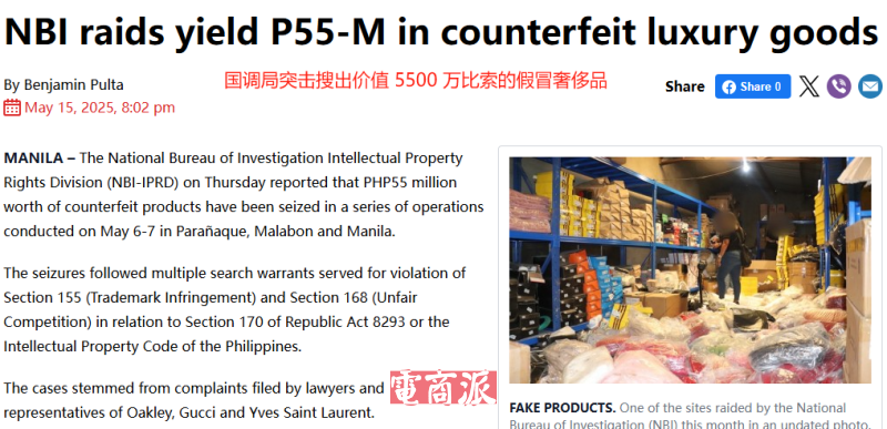而隨著電商行業發展的愈發成熟,甚至有“膽大”的賣家通過直播來賣貨,今年2月菲律賓國家調查局(NBI)發布消息稱,在甲米地省抓獲兩名銷售假冒商品的網絡賣家,涉案的所有假冒奢侈皮革制品價值高達1.2億比索(約合1502萬元)。