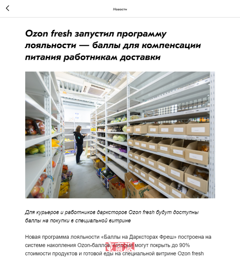 在員工待遇方面,Ozon fresh為快遞員和門店倉庫員工推出新的忠誠度計劃“Fresh積分”,通過工作時長或訂單數量積累Ozon積分,最多可抵扣90%的食品和熟食消費。員工每完成3小時工作或20次配送即可獲得150積分,有效期為一個月。該計劃覆蓋正式員工以及通過Ozon Job接單的臨時人員,旨在提升員工福利與工作積極性。