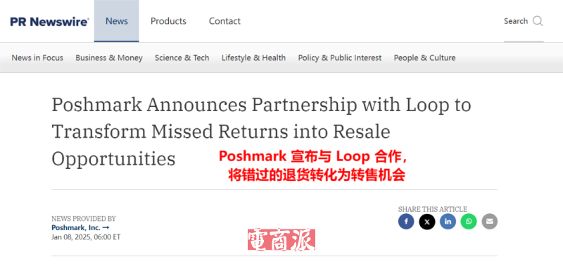 除了這種“包辦”模式,也有平臺通過與退貨平臺合作,同時提高買賣雙方的退貨便利性。比如美國二手時尚平臺Poshmark與商業運營平臺Loop達成合作,在Loop上因錯過退貨期限或不滿足退貨條件的商品可以直接在Poshmark上轉售,既簡化了消費者退貨流程,也為賣家提供了一條新的退貨處理渠道。