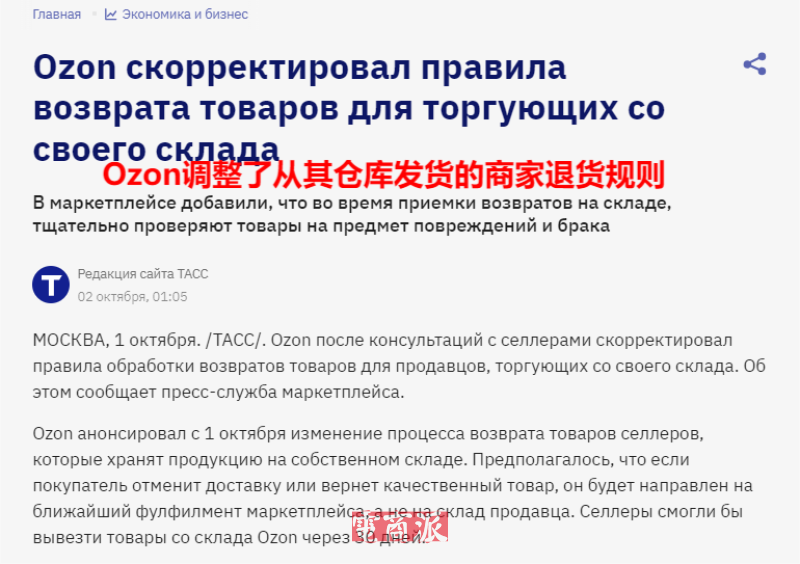 比如10月,俄羅斯電商平臺Ozon調整官方配送模式下的退貨規則,規定除珠寶、化肥、定制類產品等,顧客取消或退回、且無質量問題的訂單將自動送至Ozon倉庫,接著倉庫會檢查這些商品并根據質量情況安排后續流程。如果檢測到損壞,商品將退回給賣家;未損壞的則由賣家決定是否提貨。這種模式的目的在于減少退貨帶來的物流資源消耗,并加快商品周轉。