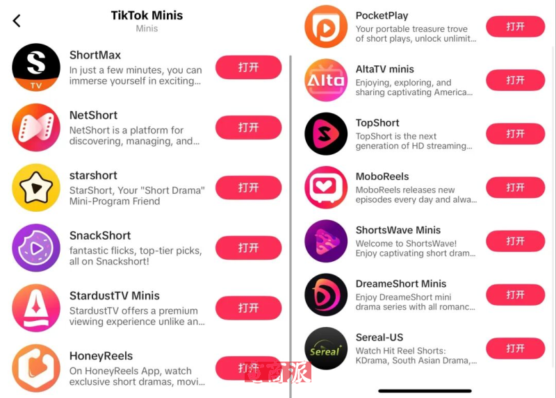 而作為內容出海的頭部玩家,抖音海外版TikTok正在借力短劇,打造全新的內容變現生態。就在最近,TikTok在其輕量小程序“TikTok Minis”上線了短劇板塊,內有十余個短劇平臺入駐,儼然是抖音短劇小程序的海外翻版。